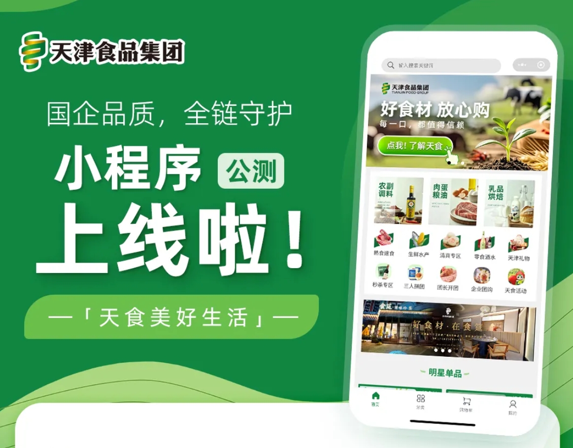 國(guó)企品質(zhì) 全鏈?zhǔn)刈o(hù)|天津食品集團(tuán)「天食美好生活」小程序公測(cè)上線啦!